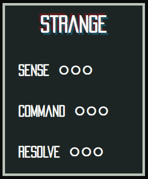 -Sense describes a character's innate or learned ability to detect the alien, supernatural, and occult. Characters with high Sense are in tune with worldly expectations – and are able to tell when something is off, sinister, or perhaps otherworldly. They may be the first to notice a ghost, invisible horror, or eldritch patterns and phenomena.- Command describes a character’s ability to make use of supernatural forces and wield them to their own ends. Read occult tomes and command the creatures they summon. Channel spirits. Cast spells. Make your changing body obey.- Resolve describes a character’s ability to withstand horrific sights and sensations. Repel the machinations of hostile, eldritch forces. Push through terrible sights and sounds. Let the mind survive. Broadly, Resolve also determines a character’s Threshold.